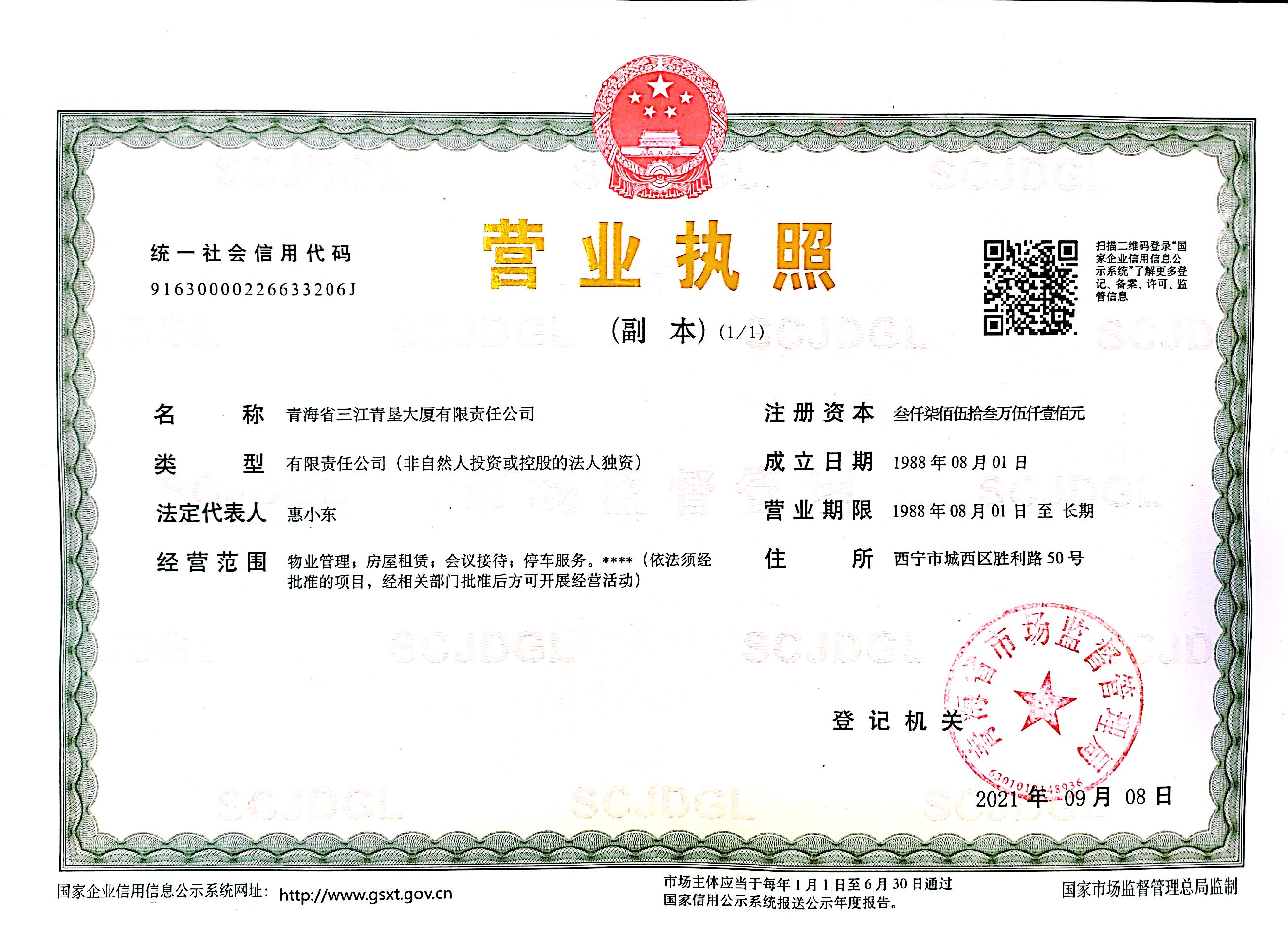 青海省三江青墾大廈有限責(zé)任公司工商信息公開(kāi)